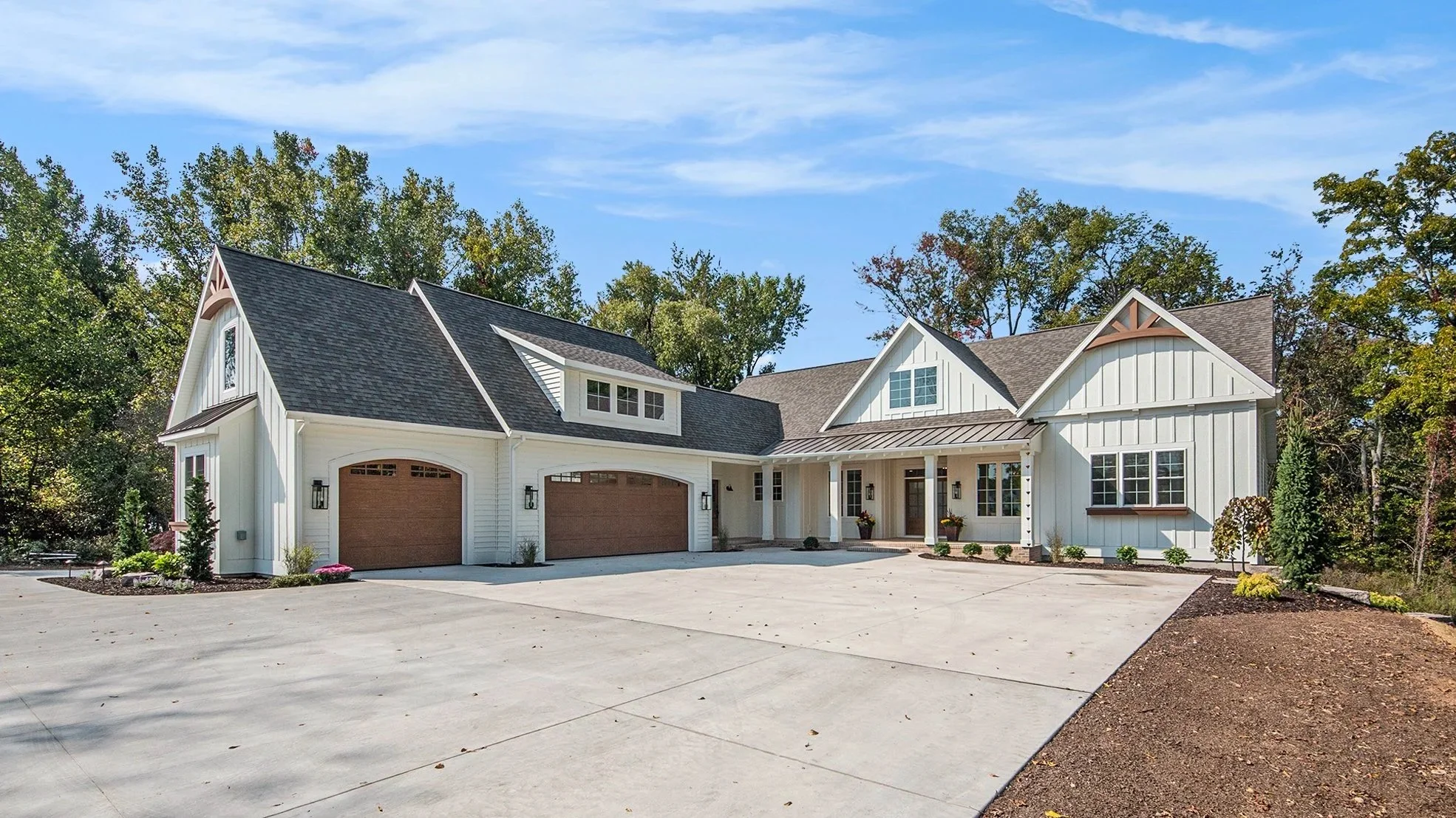 Be welcomed by a brick paver porch with dual connection to the foyer showcasing a dynamic view both inside and out, or to the mudroom with a herringbone floor. Don’t miss the masonry backsplash and double-sided fireplace, ceiling trays and beams, battened walls and halls, and drenched rooms. Genesis-built custom cabinetry and trim throughout the entire home. The kitchen features two-toned cabinetry and is accompanied by a powerhouse pantry. The shiplap kitchen ceiling carries into the dining room overlooking the woods and lake, adjacent to a screened in porch and deck for exemplary outdoor living. Pass by the office and you’ll enter the primary wing with a cathedral bedroom ceiling, his and hers closets, and a luxury bathroom outfitting a soaker tub, two vanities and tile shower. Our 4,700 SF home is built to last and grow with structural elements such as an under garage, engineered future bonus apartment above the garage and use of space under the porch. The lower level features an additional garage, family room, kitchenette, five more bedrooms and three additional bathrooms.